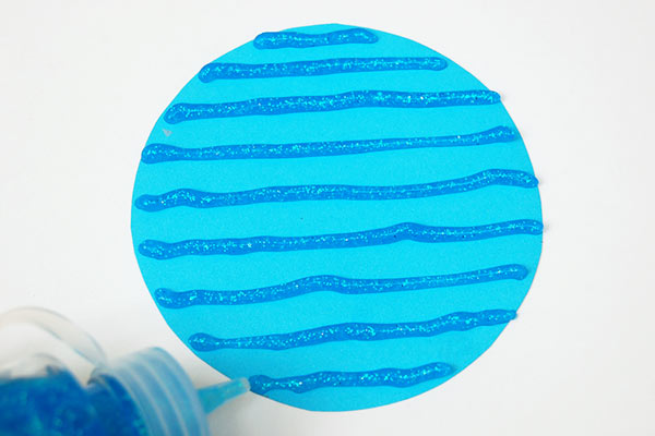 For our fish, we wanted to draw a body that's the same size and shape as the lid. To do this, we placed the jar lid over a sheet of construction paper then traced around the outline of the lid with a pencil.