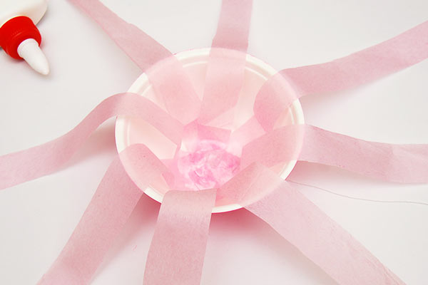 Make a fun jellyfish toy using a paper bowl and colored crepe paper strips.