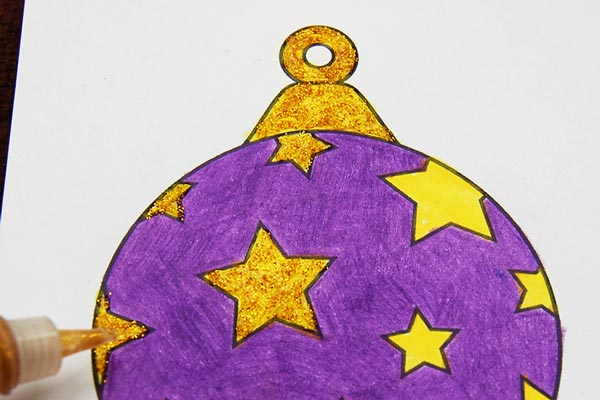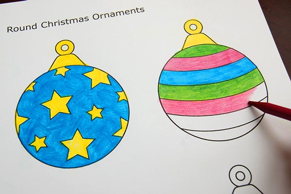 To save time coloring or painting lots of ornaments, print out the templates on colored cardstock. You will still need to paint some sections like the crown at the top of each round or teardrop-shaped ornament.